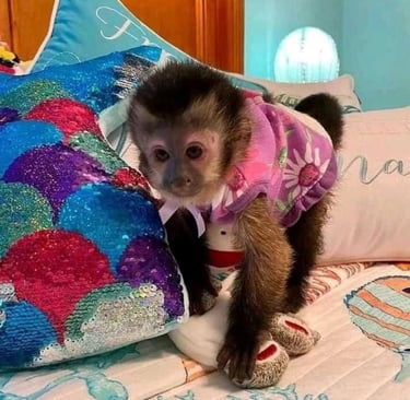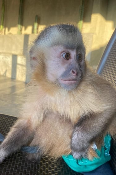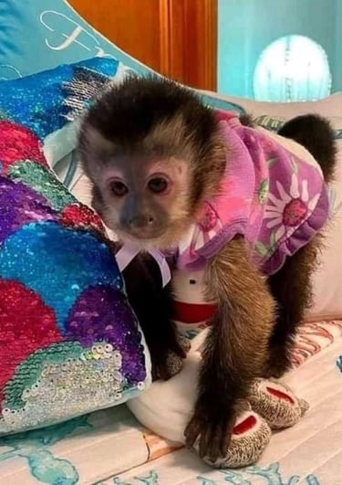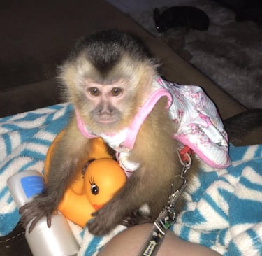 Capuchin monkeys are very clever and surprisingly easy to train. They are even used as service animals in some parts of the world to help quadriplegics - by being trained to switch lights on or off, helping to open bottles and fetching things that are needed. They are also very popular Exotic pets and are one of the worlds most recognisable monkeys. Capuchins have been used in multiple TV shows and movies, including "Friends" and some of the "Pirates of the Caribbean" movies.