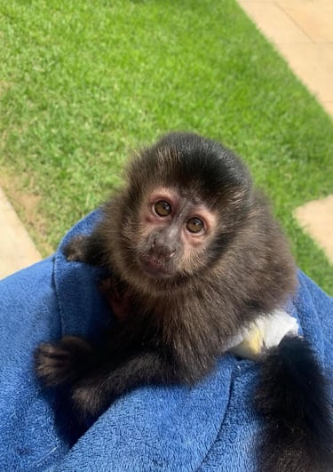 The capuchin monkey can be found in various places, such as Argentina, Brazil, Costa Rica, Honduras, Paraguay and Peru. They can reach a length of 30-56cm and can weigh anywhere between 1.4-4kgs. Owing to their dark brown colouring, with a creamy white collar around their necks, the capuchins name was derived from an offshoot order of monks - the Order of Friars Minor Capuchin, after it was noticed that they strongly resembled these brown robed monks when they had their large hoods down.